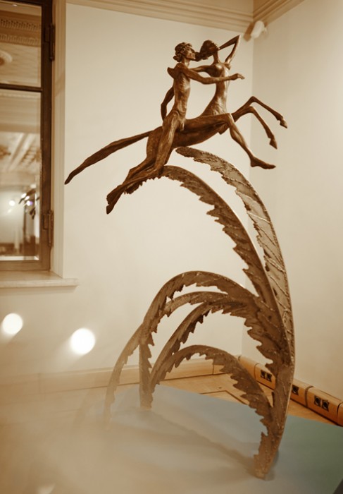 В центре экспозиции – скульптура вечно молодого Моцарта, который как бы дирижирует всей выставкой. Созданная специально для этого проекта известным скульптором, заслуженным художником России Еленой Безбородовой, эта скульптура образует смысловой стержень проекта в виде изящной вертикали –– от земного к возвышенному.